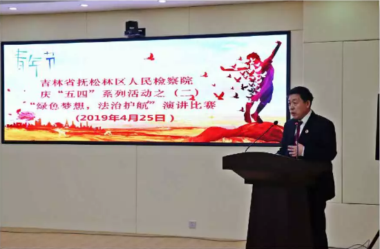 为纪念“五四”运动100周年、传承和发扬“五四”精神,丰富林区检察文化,弘扬生态文明、倡导“绿色发展”,进一步激发抚松林检青年干警积极进取、蓬勃向上的正能量,展示青年干警才智和风采。2019年4月25日上午,抚松林区人民检察院举办了以“绿色梦想,法治护航”为主题的青年演讲比赛。