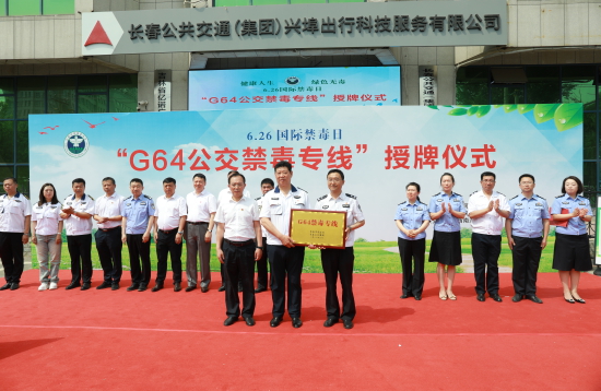为进一步提高全民识毒、防毒、拒毒意识和能力,营造全民禁毒的浓厚氛围,6月16日上午,长春市司法局联合市禁毒办、长春公交集团、公交集团西南公司、市奋进强戒所等部门,共同举行了2023年普法宣传暨“6·26”国际禁毒日“G64公交禁毒专线”授牌仪式,共同打造的“G64公交禁毒专线”正式上线运行。
