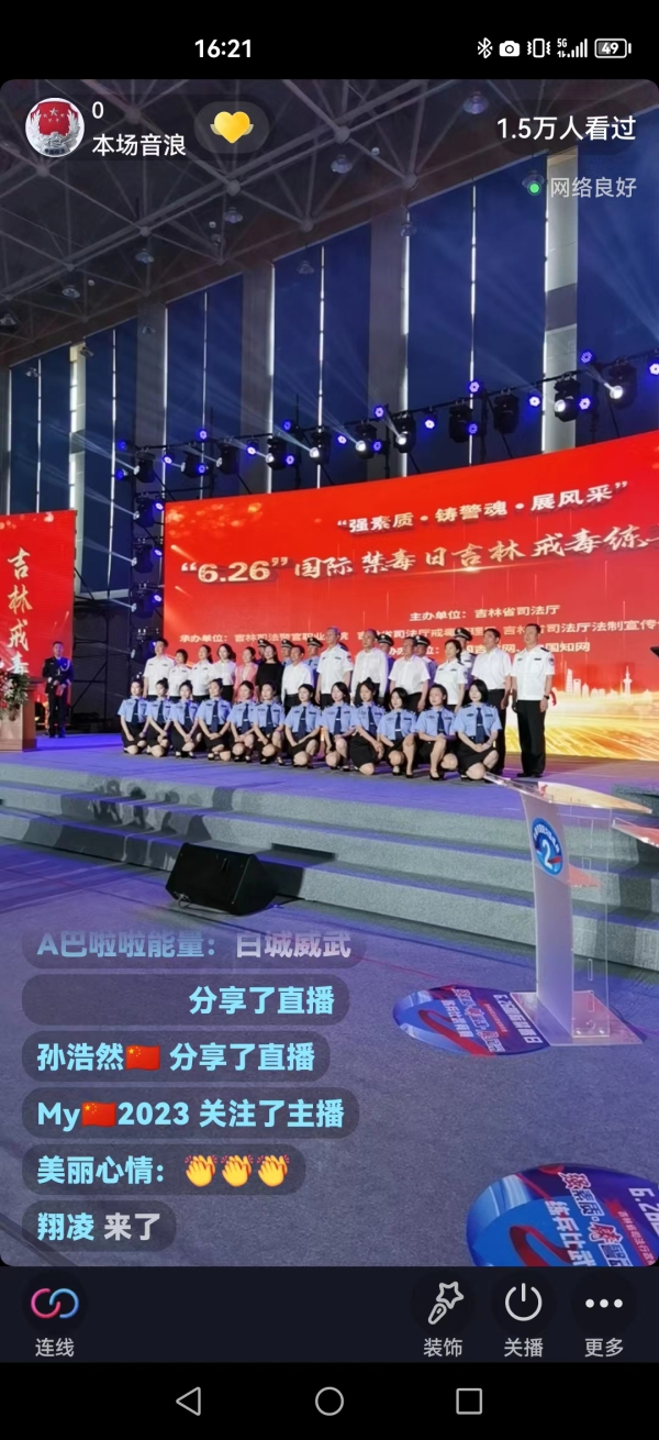 本次活动由吉林省司法厅主办,吉林省司法厅戒毒管理局、吉林司法警官职业学院、吉林省司法厅法制宣传信息中心联合承办,中国吉林网、中国知网协办。吉林省司法行政戒毒系统民警与广大网民再次相聚云端,共同见证了一年一度别开生面的“6·26” 练兵比武竞赛直播盛宴。与往届不同的是,本届活动通过中国吉林网5G直播车及“吉林戒毒”官方抖音号进行全程在线直播,全网在线观看人数突破了10万。