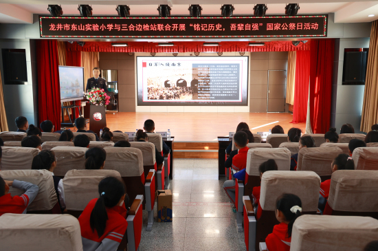 为了沉痛悼念南京大屠杀遇难同胞,铭记历史,厚植爱国情怀,12月10日下午,在第十一个国家公祭日即将到来之际,吉林边检总站三合出入境边防检查站联合龙井市东山实验小学开展“铭记历史·吾辈自强”主题活动,将生动的爱国主义教育和理想信念教育送进校园和课堂。